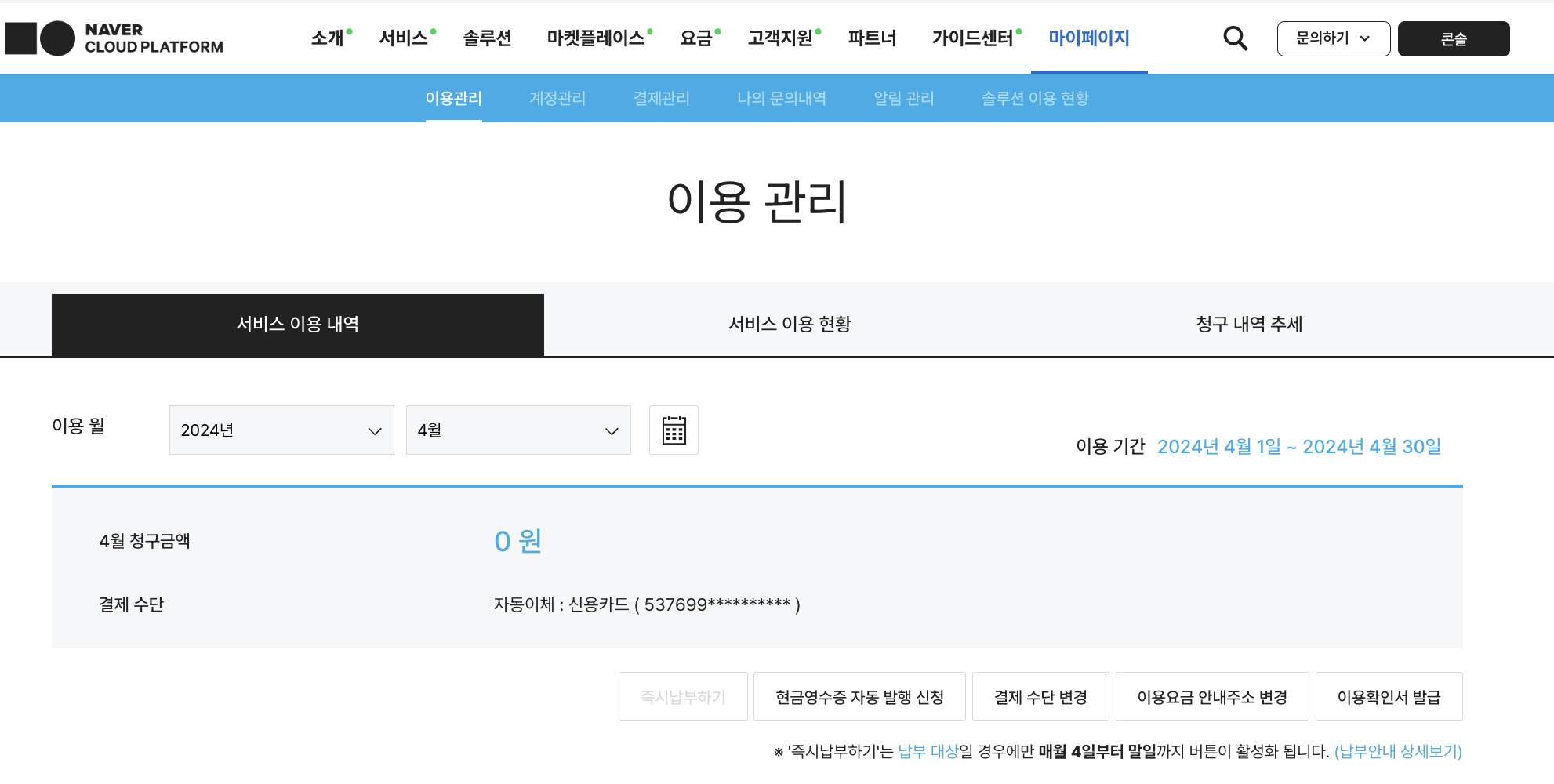 자자 그러면 이제 카드를 등록을 해야 하는 단계인데, 상단 바에 요금으로 가서 카드 정보를 등록해야 합니다.