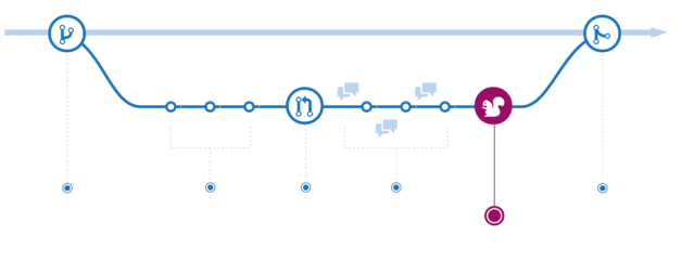 일명 feature 브랜치라고 불리는 Topic 브랜치는 새로운 기능을 개발할 때 Master(Main)으로 생성하는 브랜치를 뜻한다. 이러한 브랜치는 git flow와 같은 역할을 하지만 앞서 이야기했듯이 별도로 Hotfix 브랜치를 관리하지 않으며 버그 수정도 Topic 브랜치에서 작성한다.